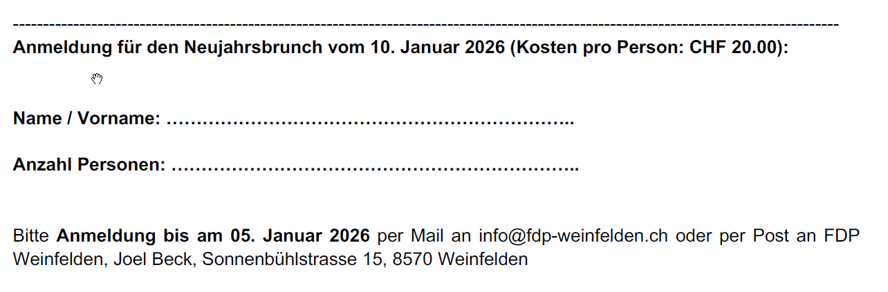 Anmeldetalon bis spätestens am 05. Januar 2026.